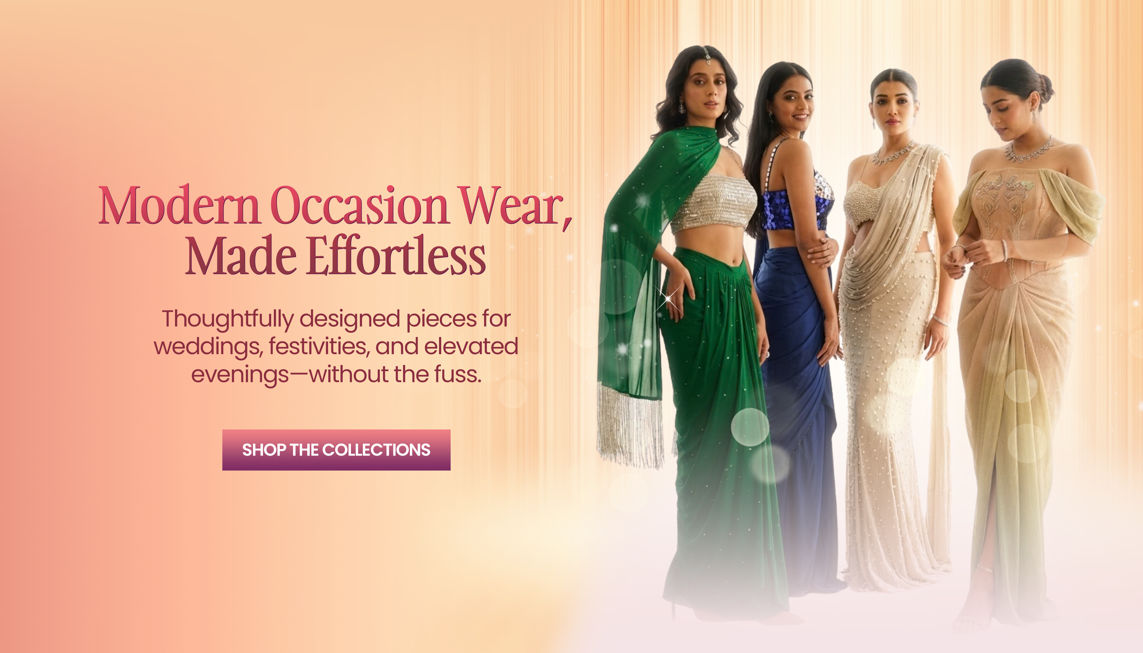 Discover the unconventional combinations of fabrics, prints and colors in the loud prints of delicate vintage ecstacy. The silken fabric of Indian silk and satin has weaved the magic of Chloris. This captivating contemporary collection is to sooth your eyes with grace and splendour.