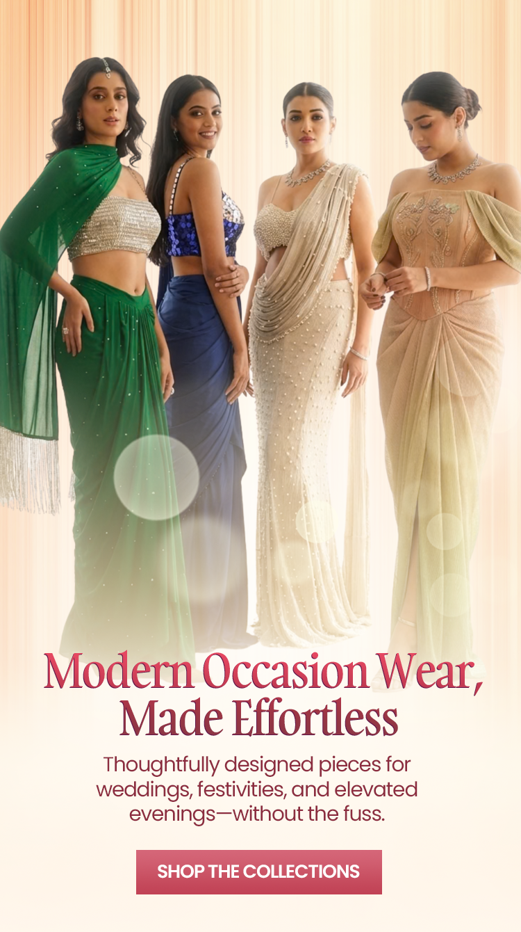 Discover the unconventional combinations of fabrics, prints and colors in the loud prints of delicate vintage ecstacy. The silken fabric of Indian silk and satin has weaved the magic of Chloris. This captivating contemporary collection is to sooth your eyes with grace and splendour.
